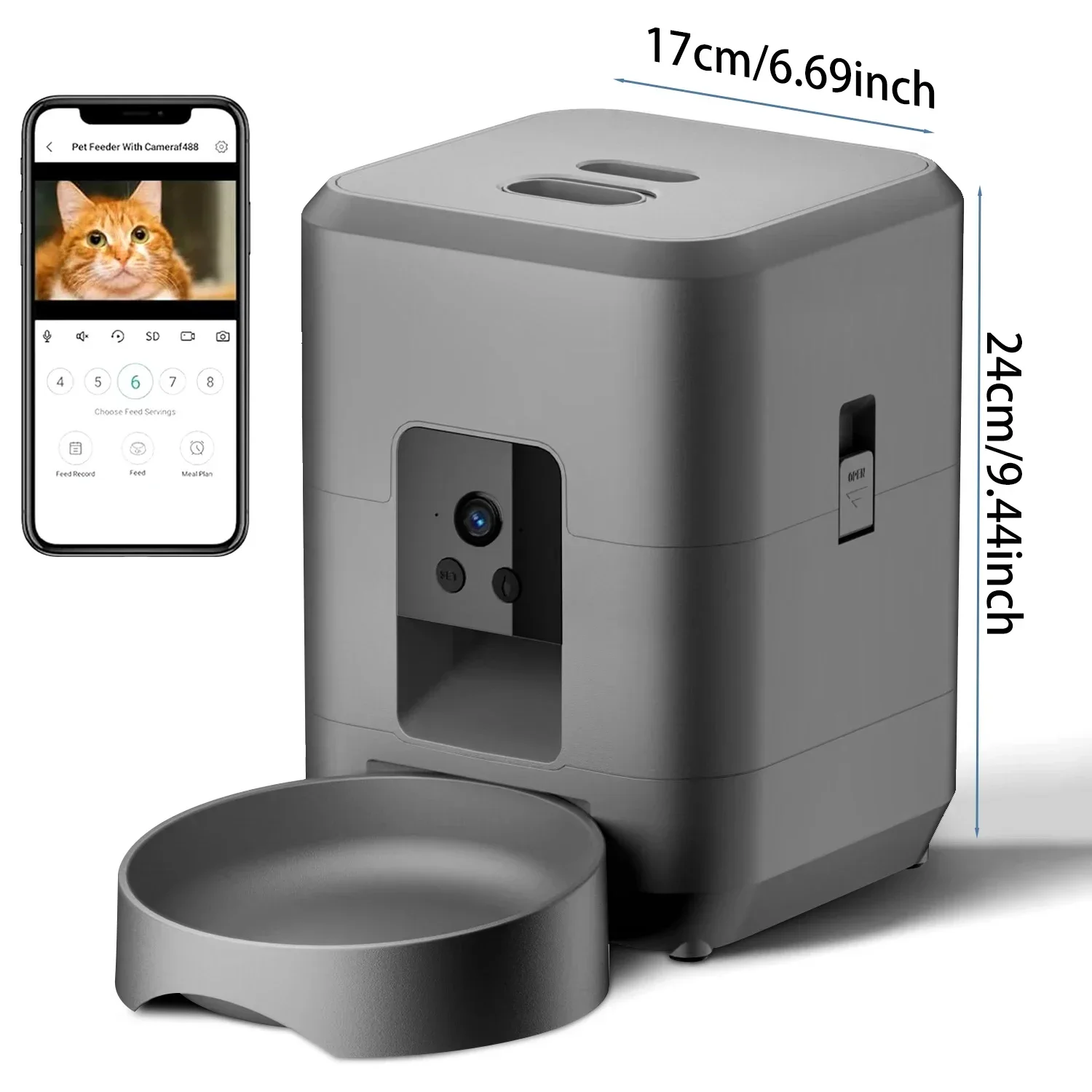 2L Smart Pet Feeder Cat Automatic Pet Feeder Wi-Fi & 1080P HD Camera APP Control for Remote Feeding Dog & Cat Food Dispenser