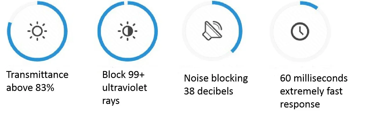 The smart dimming film is attached to the glass, which has a sound damping effect and can effectively block all kinds of noise.