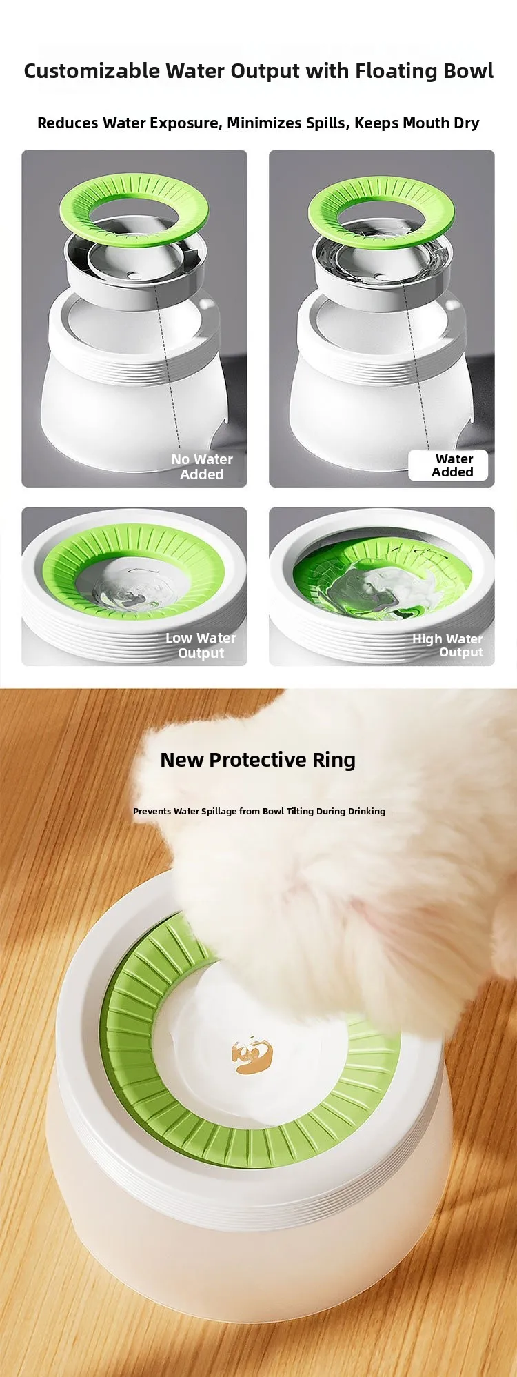 The float feature of the bowl helps to maintain the water level, preventing your pet from drinking too much at once.