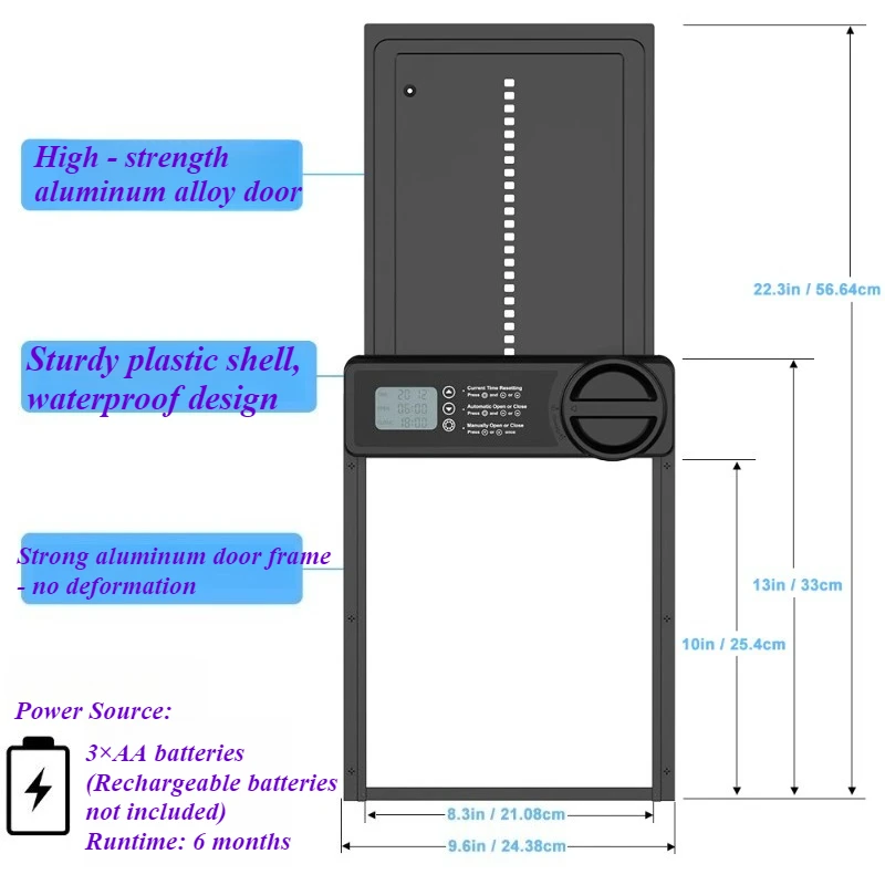 IPX3 Waterproof Pet Door, Aluminum Alloy Smart Timer Auto-Lift Chicken Coop Gate for Pigeons