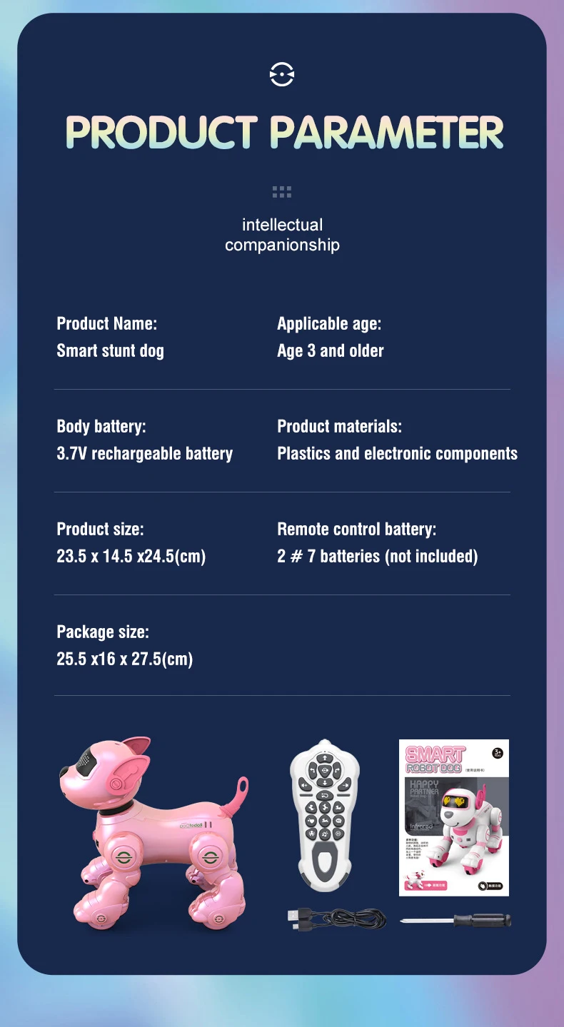 Robot dog *1, remote control *1, manual *1, charging cable *1,