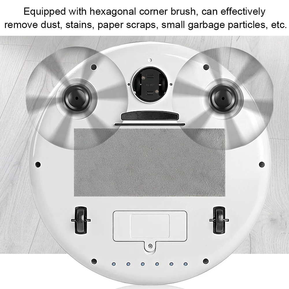 3. Equipped with hexagonal corner brush, can effectively remove dust, stains, paper scraps, small garbage particles, etc., to keep room clean and tidy.