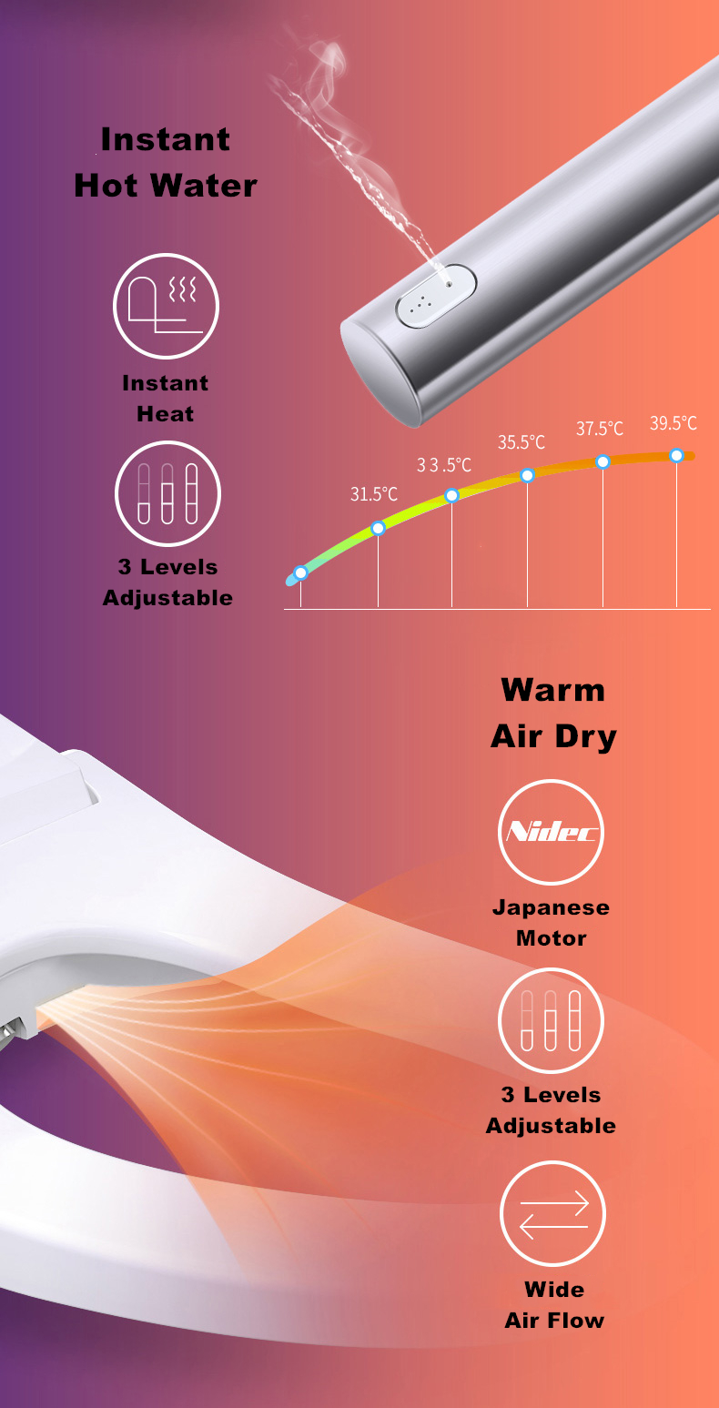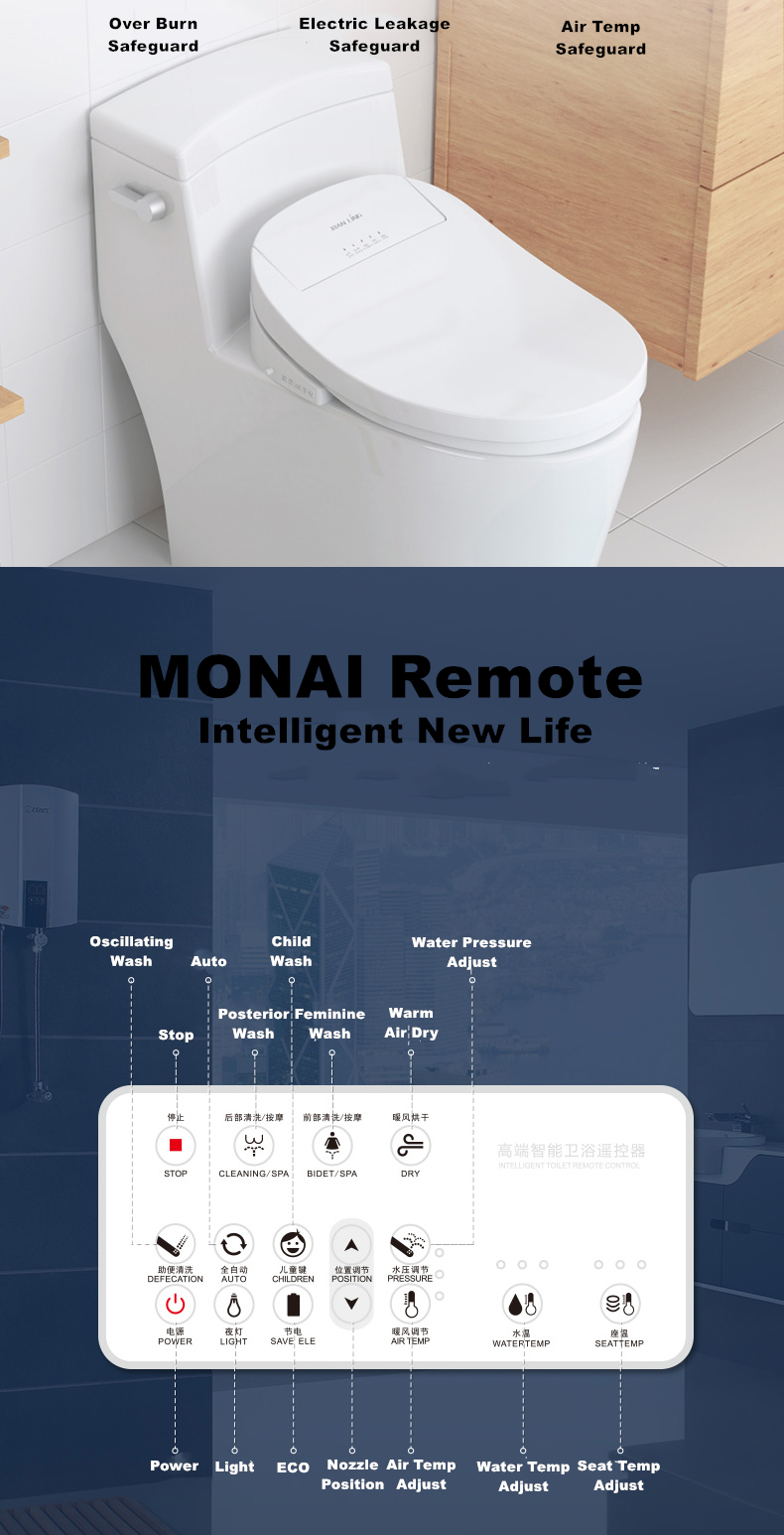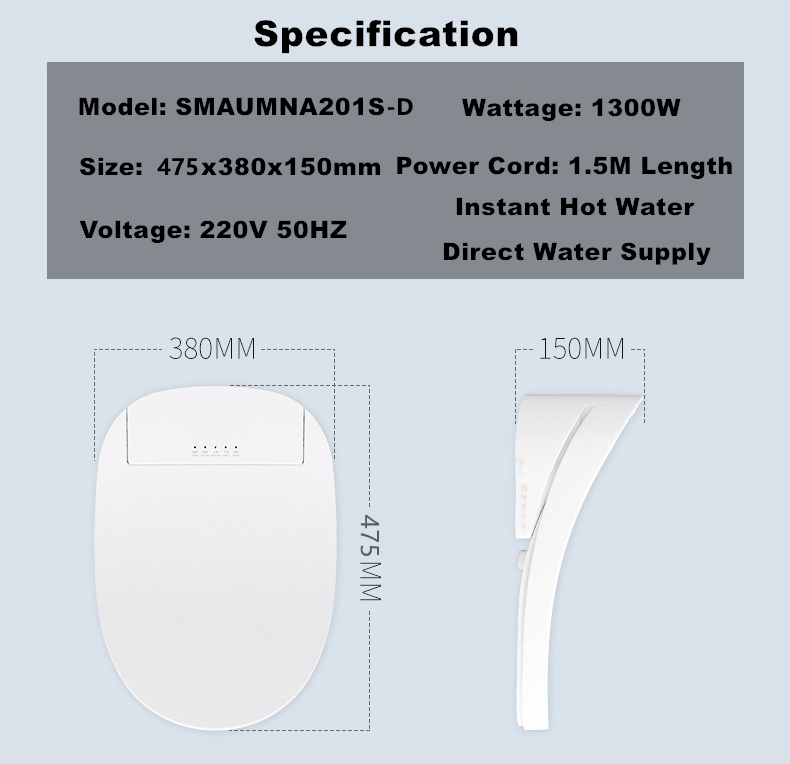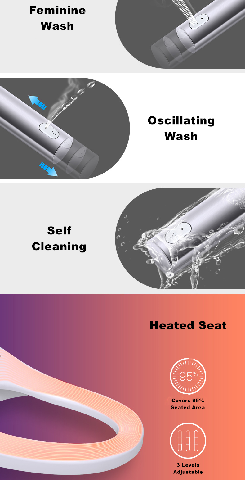 Smart Toilet Seat Bidet Electric Washlet Cover Remote Control Heated Water Clean