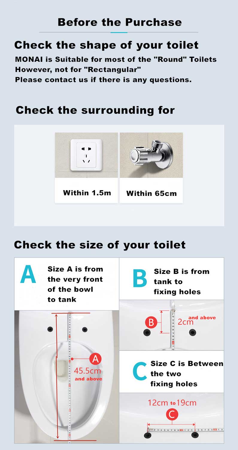 Fit toilet length: 500 to 570mm and 455 to 500mm