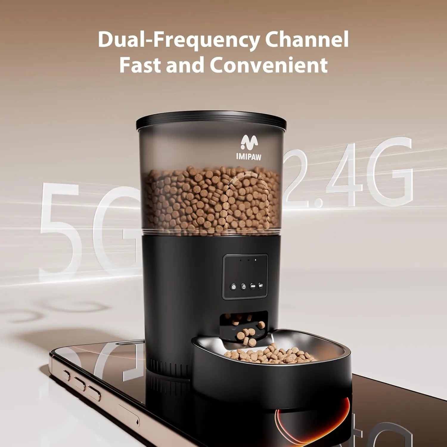This smart pet feeder is designed to make feeding your cat or dog effortless and reliable. Key features include: 1. **WiFi Connectivity & App Control**: Connect the feeder to your home WiFi network via the companion app for remote management from anywhere. Schedule feedings, adjust portions, and monitor activity on your smartphone. 2. **Programmable Timed Feeding**: Set up to 10 meals per day with precise timing to maintain a consistent feeding routine for your pet, promoting healthy habits even when you're away. 3. **Dual Power Supply**: The feeder operates on both AC power and battery backup (batteries not included), ensuring uninterrupted service during power outages for peace of mind. 4. **Large Capacity & Multiple Meals**: It can dispense dry food in portions ranging from 1 to 10 meals daily, suitable for pets of various sizes and dietary needs. 5. **Stainless Steel Bowl Included**: Comes with a durable, easy-to-clean stainless steel bowl that resists scratches and odors, keeping food fresh and hygienic. 6. **Desiccant Bag Feature**: A built-in desiccant bag helps absorb moisture inside the storage compartment, preserving food freshness and preventing clumping. 7. **User-Friendly Design**: Simple setup with clear instructions; the compact size fits most spaces while holding ample food supply for extended periods. Ideal for busy pet owners who travel or work long hours, this automatic feeder ensures your furry friend is fed on time every day without hassle.