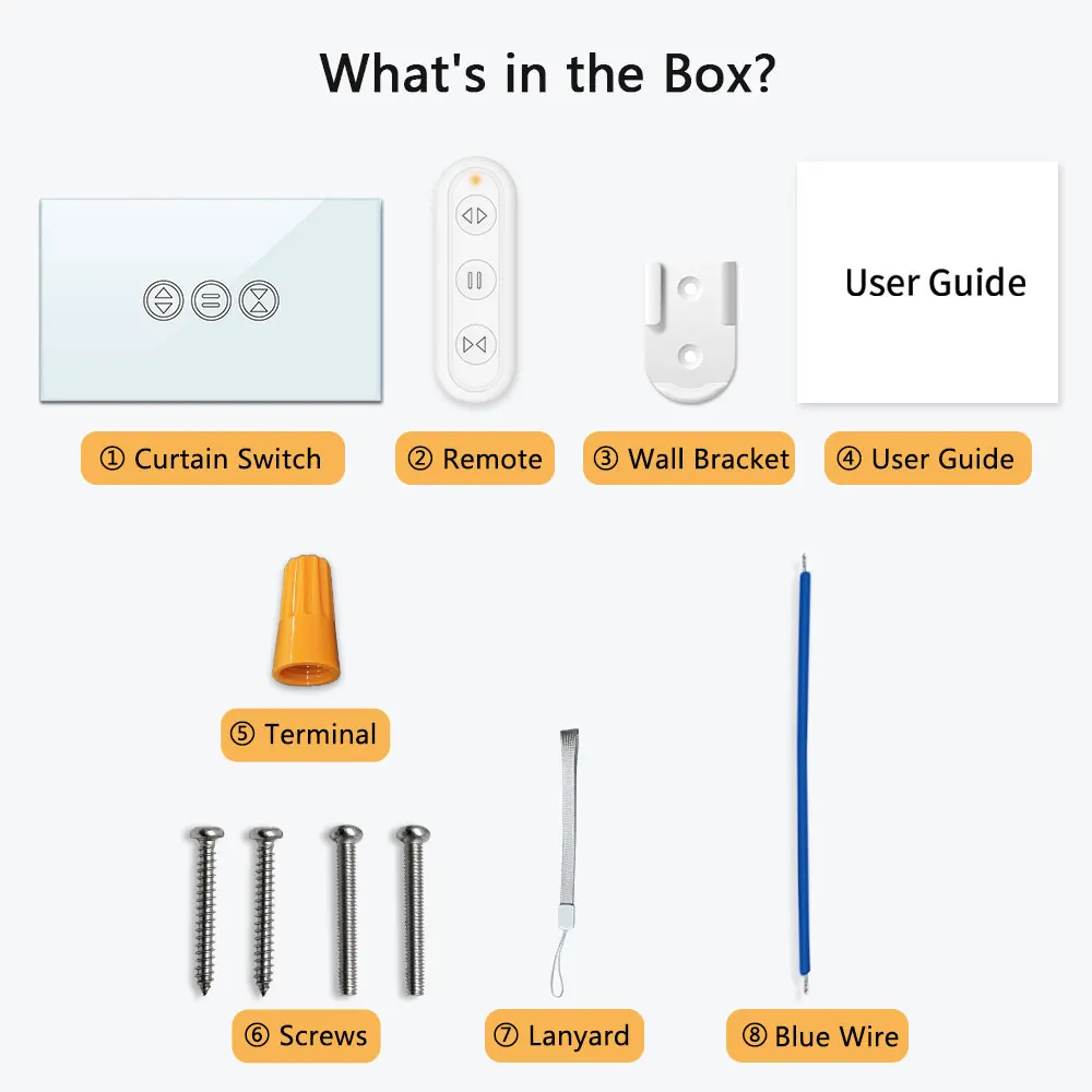 User Manual with 8 pages detailed instruction for how to connect curtain switch, how to connect App.