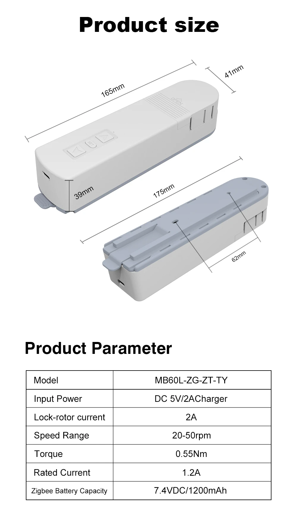 2.Built-in 1200mAh High Capacityaluminium battery ensures continuoususe of the blinds motor.The normal frequency of use can support 2 months of operation.