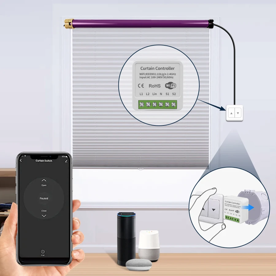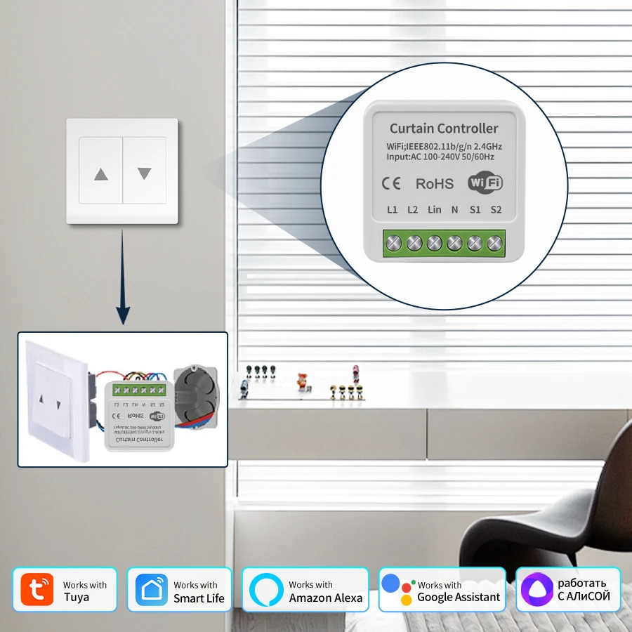 Wifi Smart Curtain Switch Module Tuya Smart Life Alexa Google Roller Blinds Shades Rolling Garage Door Projector AC 100-240V